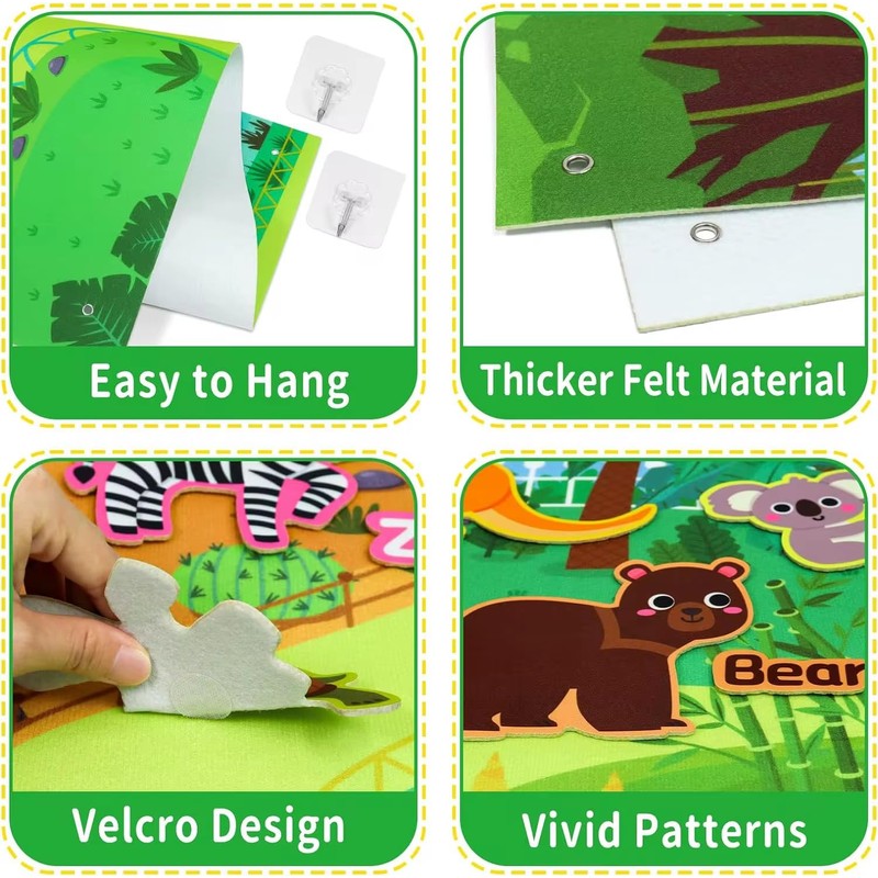 Enelia Zoo Animal Felt Board – 43 x 28 Inches Large Safari Storyboard with 20 Soft Felt Animals – Montessori Educational Board for Toddlers and Preschoolers Ages 3 +