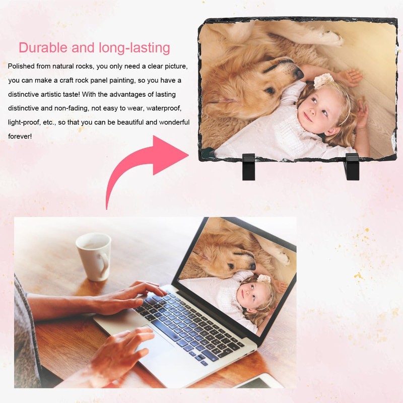 • Product Size: Our sublimation rock slate blanks are made of slate, these blank photo frames measure about 6 x 8 inches / 15 x 20 cm, they are sturdy and quality, the surface is not easy to tear, water and UV resistant, and also not easy to fade, it can keep the original color of photos for a long time,Manual measurement may have an error of 1-2 centimeters, which is within the normal range.