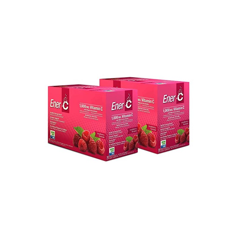 Ener-C Raspberry Multivitamin Drink Mix, 1000mg Vitamin C, Non-GMO, Vegan, Real Fruit Juice Powders, Natural Immunity Support, Electrolytes, Gluten Free, 30 Count (Pack of 2)