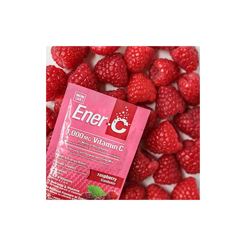 - ENER-C VITAMIN C, ZINC AND 24 VITAMINS & MINERALS: Delicious, all natural Vitamin drink mix with 1000mg Vitamin C & 5mg Zinc; Flavored with real fruit juice powders; 2-Pack of 30 Raspberry Sachets, (60 Vitamin Drink Packets)