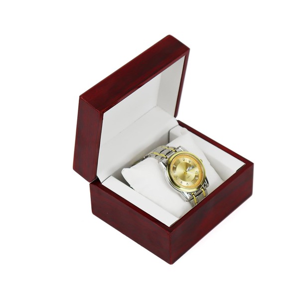 - Wood+ PU Leather: The exterior of the mens watch box is a square wooden shell, which feels smooth and has a unique vein. The interior is wrapped in PU leather with a removable pillow, protecting the watch from scratches or wear