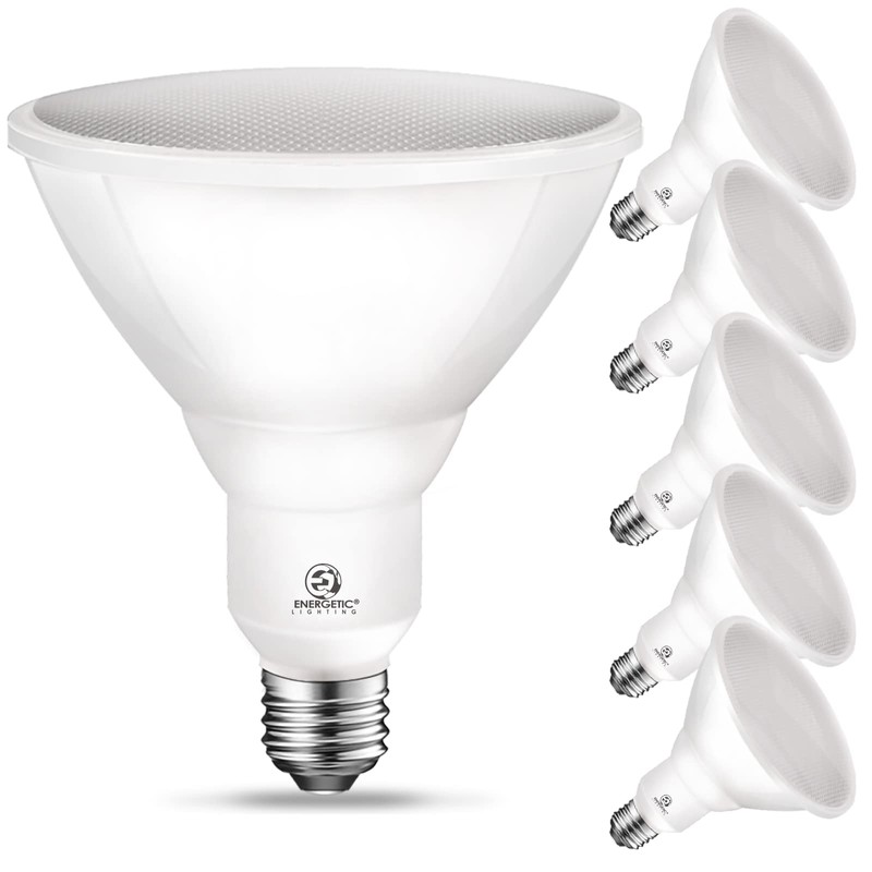 Energetic PAR38 LED Flood Outdoor Light Bulb, 5000K Daylight, 90 Watt Equivalent (11W), Wet Rated, 900LM, E26 Base, Non-Dimmable, UL, 6 Pack