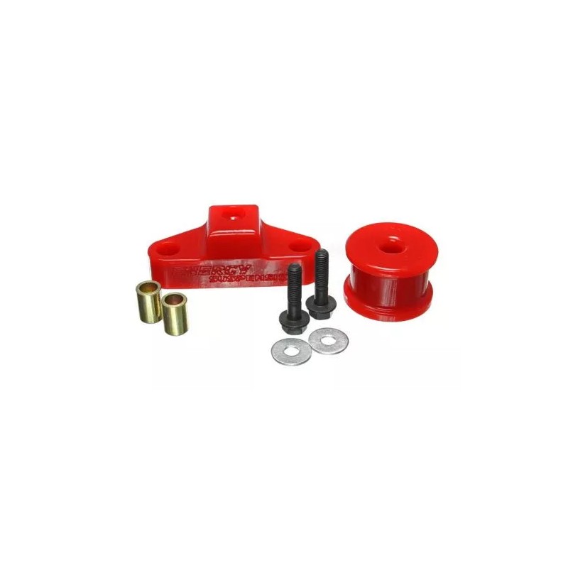 Energy Polyurethane Motor Mount & Transmission Mount Inserts both restore worn mounts and reduce unwanted motor assembly movement. Under high performance conditions, they reduce wheel hop and torque induced movement that can actually damage vehicle components! These polyurethane inserts are thoroughly tested to add support and stability to the existing O.E.M. motor mount system. Typically, they are mounted in the "torque position" location of the vehicle motor and transmission mount system. The two piece supporting insert set is designed to be used in conjunction with the original stock motor mount. The benefit of this design is additional strength and toughness, thanks to the polyurethane support. This solution is easy to install and just as easy to remove and return the mount to stock configuration, if so desired. Energy's specially formulated HYPER-FLEX performance polyurethane material is used to assure long-lasting performance, unlike many O.E.M. rubber motor mounts. Available in red or black color.