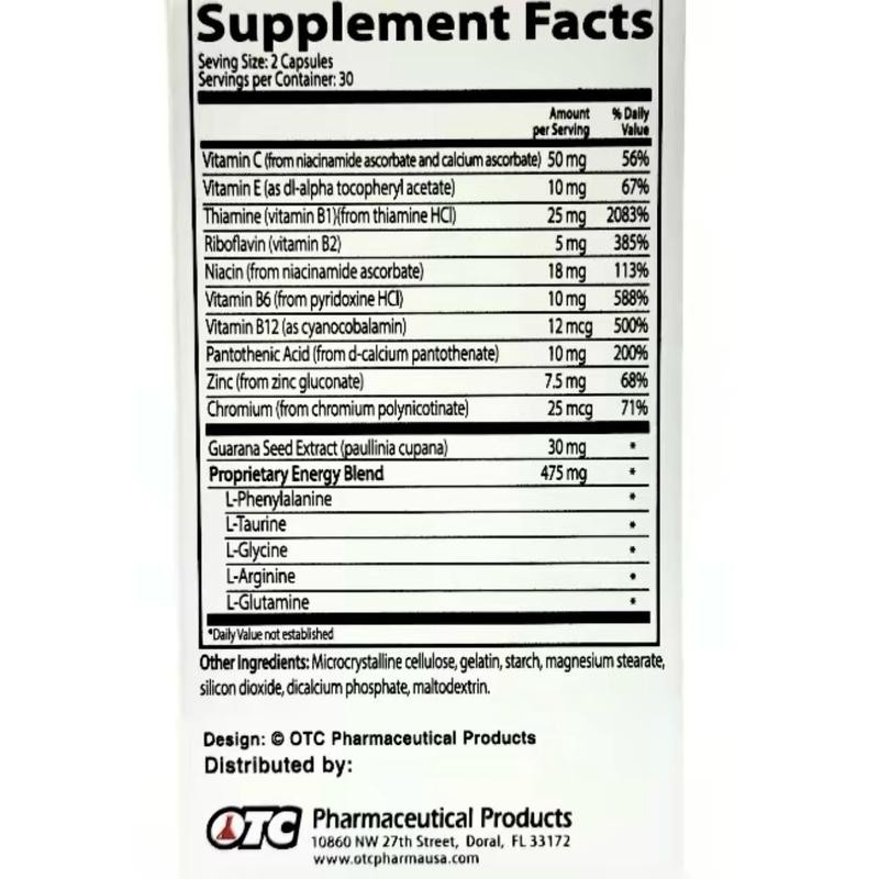 Boost your mind and body with this Energy Dietary Supplement in convenient capsule form. Formulated with a blend of amino acids, zinc, vitamin B12, and vitamin B6, this supplement supports overall wellness, enhances energy levels, and promotes mental clarity. Ideal for adults seeking a natural way to increase stamina, focus, and vitality. Made in the U.S. by OTC Pharmaceutical Products, each pack contains 60 capsules with an 18-month shelf life.