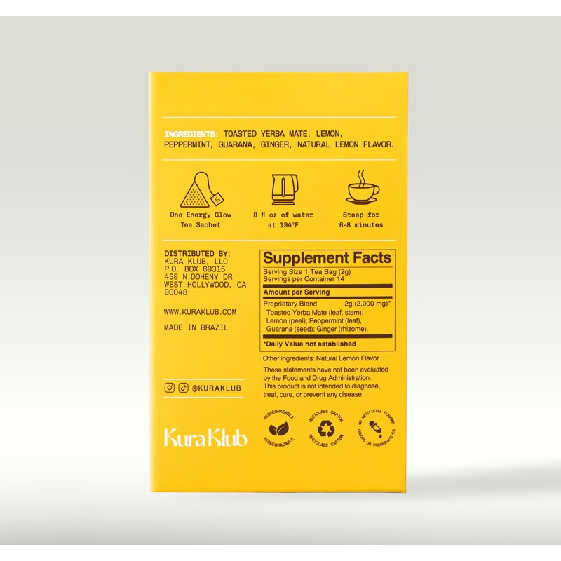 Kickstart your day with Energy Glow, a vibrant, earthy, and refreshing citrus blend designed to boost energy, sharpen focus, and enhance your natural glow. Made with a dynamic mix of revitalizing herbs, this caffeine-infused tea delivers clean, sustained energy without the crash—keeping you alert, refreshed, and ready to take on anything. 🌿 Power-Packed Ingredients for Energy & Focus: ✔ Toasted Yerba Mate – A natural energy source that enhances mental clarity and keeps you going. ✔ Guaraná – A Brazilian superfood that fuels endurance, focus, and metabolism. ✔ Ginger – Warming and stimulating, it supports circulation and keeps energy levels steady. ✔ Lemon – Bright and hydrating, it refreshes and recharges the body. ✔ Peppermint – Cooling and revitalizing, it helps fight fatigue and keeps you feeling fresh.