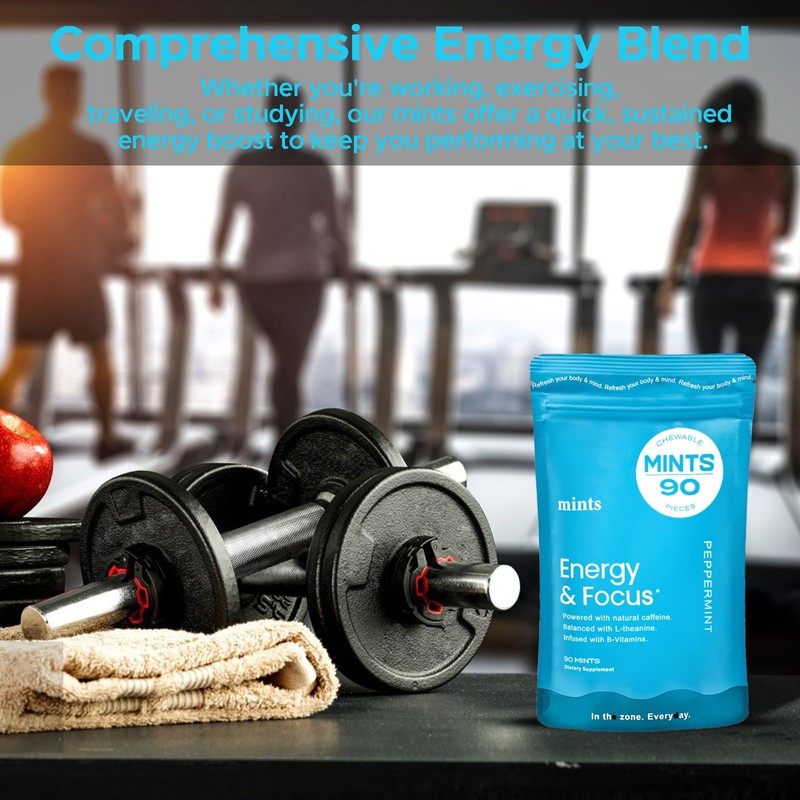 Energy Mints with L-Theanine and Sugar Free Natural Caffeine Boost for Focus, 90 Pcs