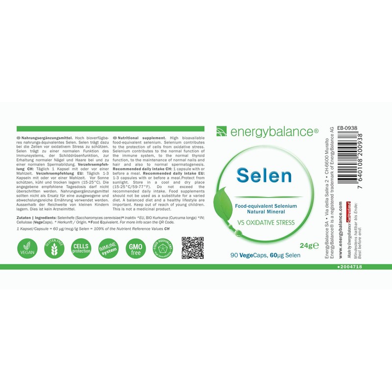EnergyBalance Selenium - Capsules with Organic Selenium Yeast and Turmeric - Vegan, No Additives - 90 VegeCaps of 60 μg