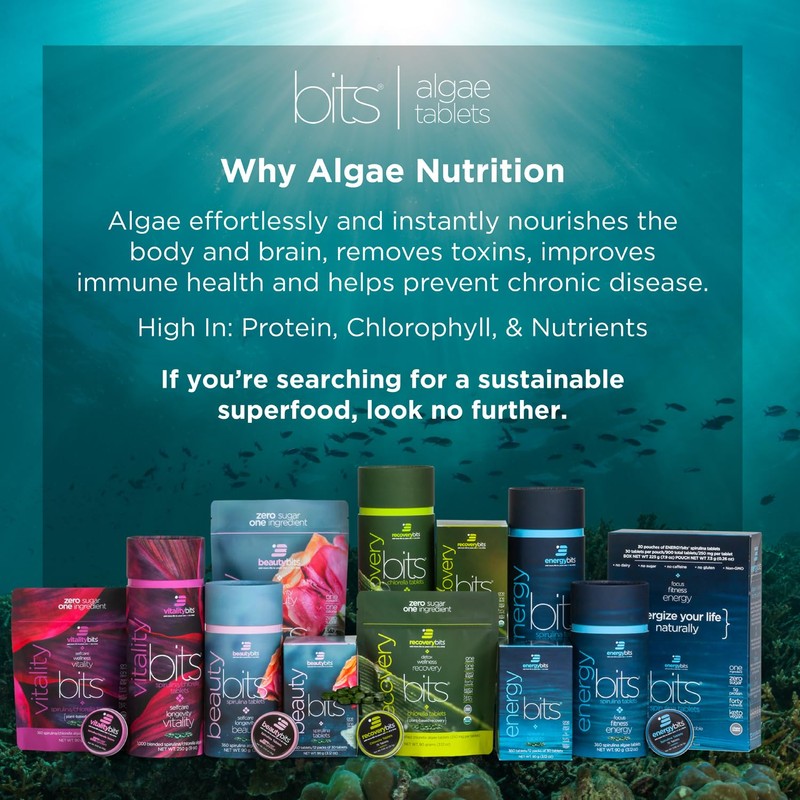 - 2 Bags of Each - ENERGYbits spirulina tablets supercharge your work day and workouts by giving you energy, focus, and endurance. RECOVERYbits are chlorella tablets designed to detoxify your body, aid muscle recovery, and boost overall wellness.
