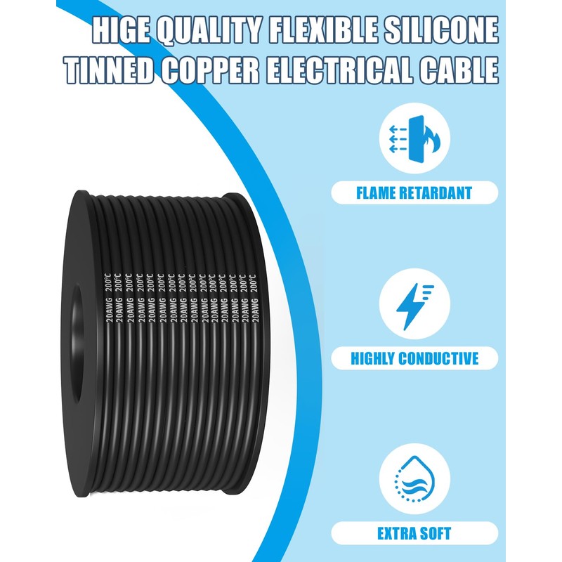 - WIDE RANGE OF APPLICATIONS: This silicone 20 awg wire cable is widely used in automotive, Marine, electrical appliances, remote control models, electric DIY, motor cables, lighting fixtures, digital 3D printers, electric toys, batteries, robots, etc