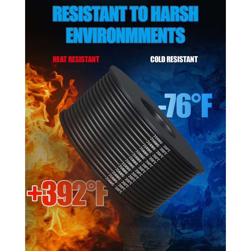 - FLEXIBLE AND EASY TO USE: The insulation layer of the flexible 20 awg wire is made of high-quality silicone rubber, simply cut, Strip, solder or crimp the terminals, Easy to wire in your application,waterproof, corrosion-resistant and heat-resistant