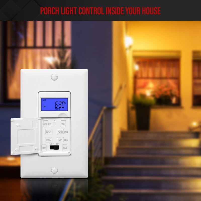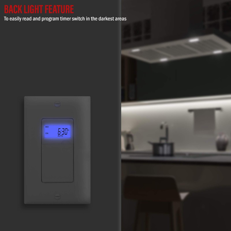 - Back Light Feature: Digital blue back light display to easily read and program timer switch at the darkest areas. Program your indoor and outdoor lights, fans, sprinklers, and motors to turn on and off automatically at the preset time