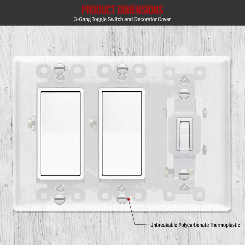 ENERLITES Combination Toggle Light Decorator Switch Wall Plate, Size 3-Gang 4.50" x 6.38", Polycarbonate Thermoplastic, 881132-W, White