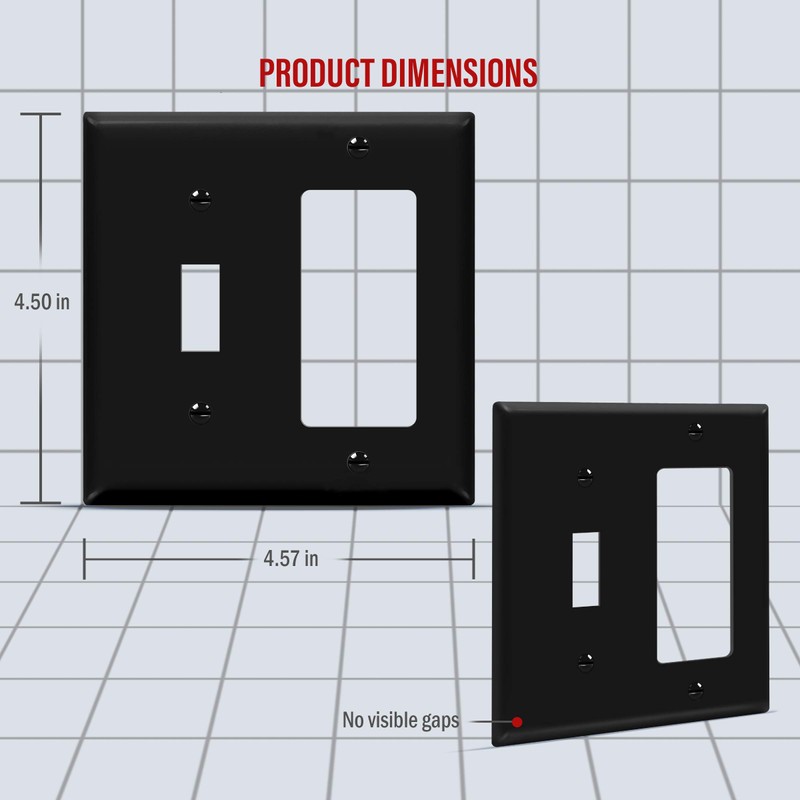 ENERLITES Combination Toggle Light Switch/Decorator Light Switch Plate, Double Switch Wall Plate, Standard Size 2-Gang 4.50" x 4.57", Polycarbonate Thermoplastic, 881131-BK, Black
