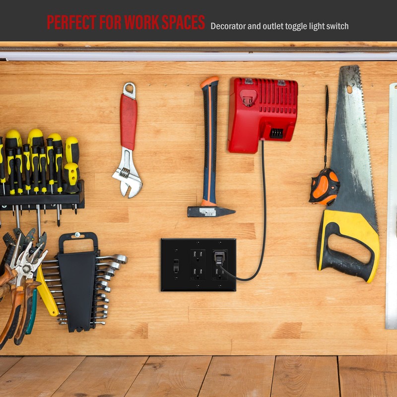 ENERLITES Combination Toggle Light Switch/Decorator Light Switch Plate, Three Gang Wall Plate, Standard Size 3-Gang 4.50" x 6.38", Polycarbonate Thermoplastic, 881132-BK, Black