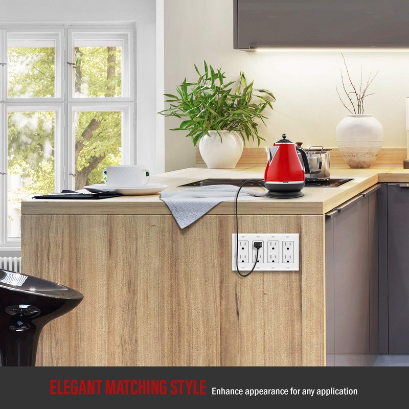 Enerlites polycarbonate thermoplastic decorator switch wall plates are designed to cover any standard size decorator light switch or receptacle Outlet. These wall plates are manufactured to provide durability, flexibility, and resilience to bending and high-impact. They are also heat & Fade resistant to temperatures over 100 degrees which protects them from fading and discoloration over time, and have a Flammability rating of UL94, V2. Their smooth finish provides an attractive look and makes them easy to clean. These wall plates are UL-listed.