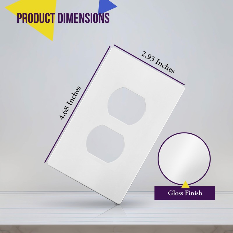 - Easy replacement of any duplex wall plate of the same configuration; standard size dimensions: 4.68" height x 2.93 length