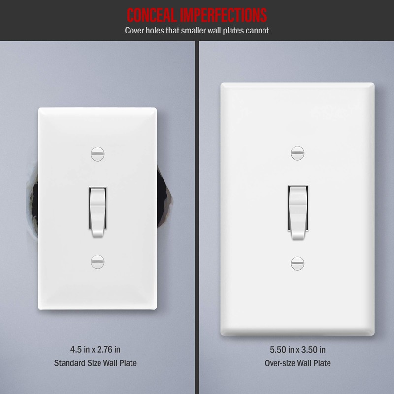 ENERLITES Toggle Light Switch Wall Plate, Jumbo Switch Cover, Oversized 1-Gang 5.5" x 3.5", Unbreakable Polycarbonate Thermoplastic, 8811O-W, White