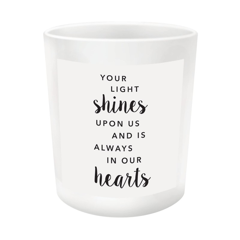 - DESIGN: features a beautiful cardinal bird and messaging that reads "Your light shines upon us and is always in our hearts"