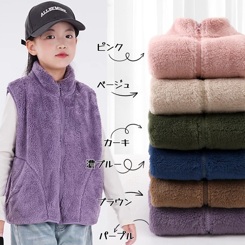 [Enfants Chéris] キッズ ボアベスト 男の子 女の子 親子服 子供服 紳士 レディース ふわふわ もこもこ 無地 起毛 春秋冬 柔軟 暖かめ ホットコット アウター 紺 170