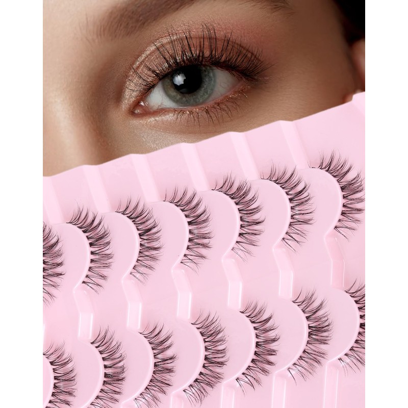 ENFOO Lashes Natural Everyday Wispy Lashes Natural Look Clear Band Flared Eyelashes Fake Eye Lashes Soft Fluffy Lashes False Eyelashes 7 Pairs SF-03