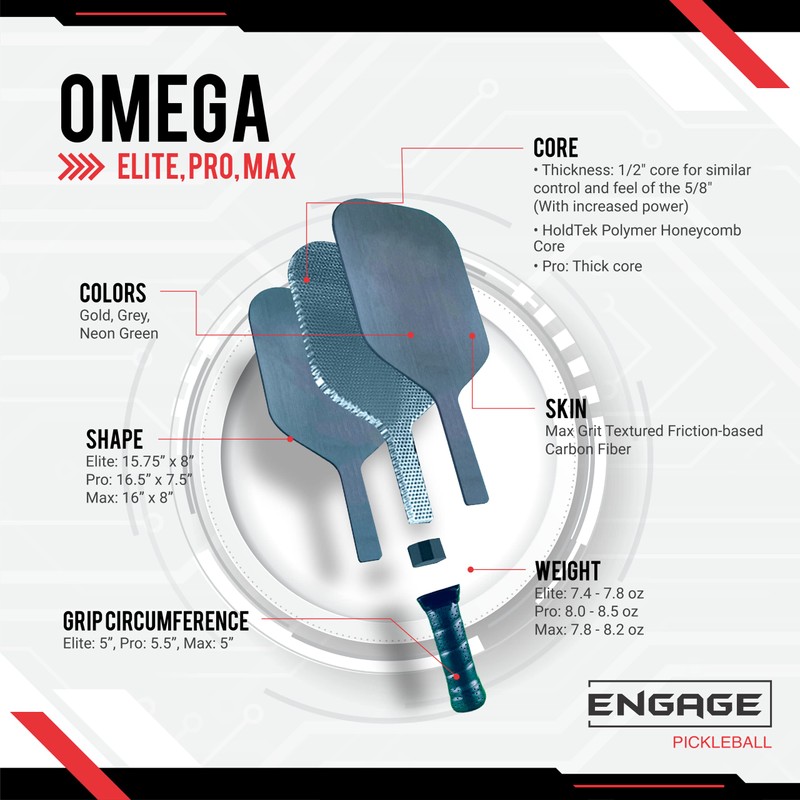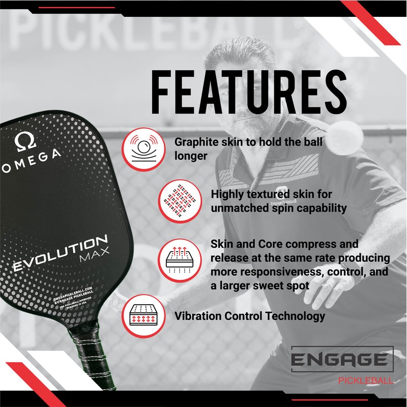 Engage Pickleball Omega Evolution Max Pickleball Paddle - Pickleball Paddles with Polymer Core - USAPA Approved Pickleball Paddles Pickleball Rackets for Adults - (Black and Grey)
