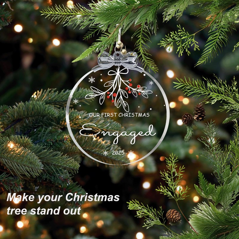 - 🎄【Engaged Christmas Gift 2025】The Ornament is including a hanging silver ribbon cord loop to easily hang on your Christmas tree. Unique design, perfect for hanging on the tree, window, wall or anywhere you want.