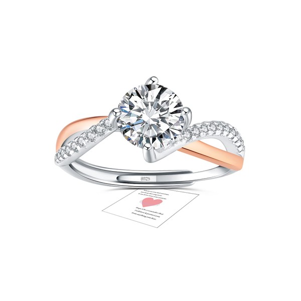 Engagement Rings - Adjustable Rose Gold Ring, Sterling Silver Eternity Rings for Womens - Diamond Ring Women, Promise Ring Crossover CZ Cubic Zirconia Rings Women Jewellery Gifts for Her