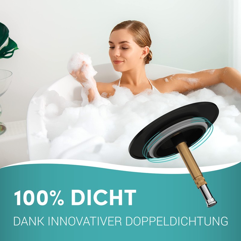 Engelbach® Bathtub Plug with Universal Fit - Plug Bathtub Rustproof with Double Seal - Bath Plug for Any Standard Bathtub in Matt Black