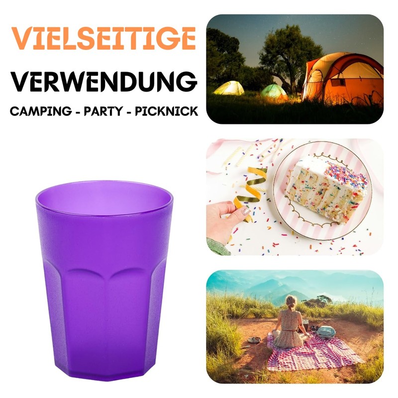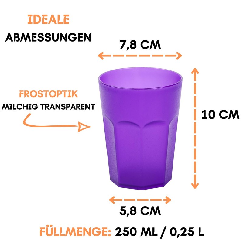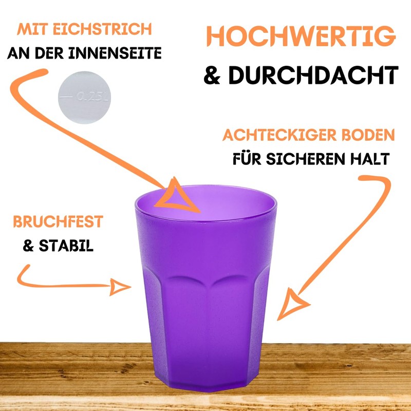 • ENGELLAND - Set of 20 plastic cups in frost look, colour: purple, capacity: 0.25 litres with calibration line. The ideal addition to any party and ideal for lively children's birthdays, cocktail evenings and camping trips