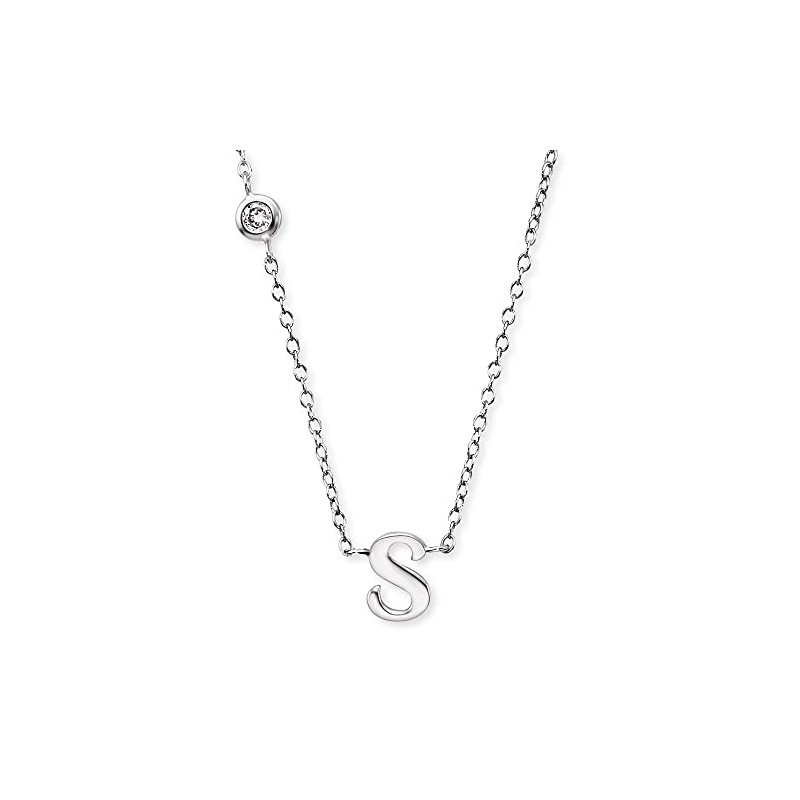 Engelsrufer Women's Necklace Made of Sterling Silver with Letter S Pendant Set with Zirconia Stone Adjustable in Two Lengths Length 44 cm, Sterling Silver, Cubic Zirconia