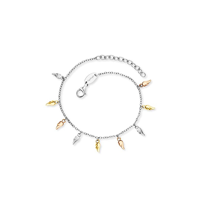 Engelsrufer Women's Sterling Silver Bracelet with Nine Free-Floating Wings Tricolour – Lobster Clasp – Adjustable Length – Nickel-Free, Sterling Silver, No Gemstone