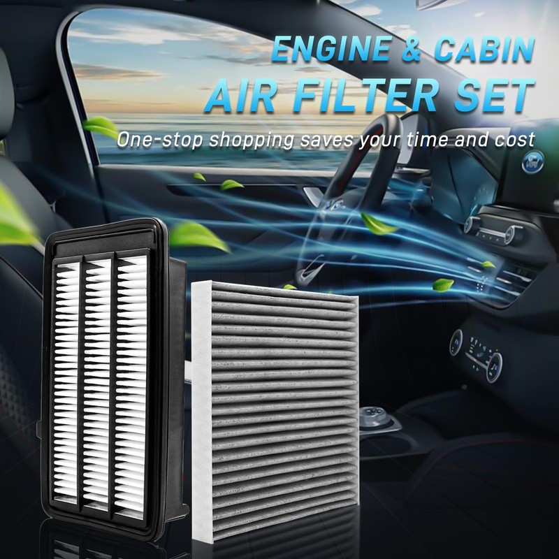 • 2-in-1 Combo Pack: 1 x Cabin air filter & 1 x engine air filter bundle replacement kit, one-stop shopping saves your time and cost of selecting vehicle's air filters separately. Note: Please check and make sure both the engine & cabin air filters fit your car