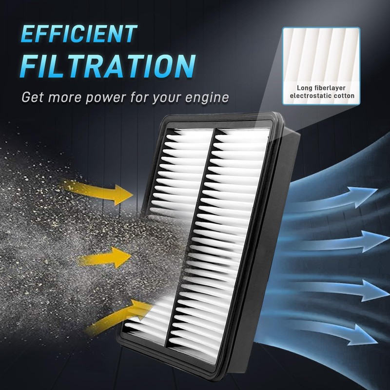 The engine air filter has more folding layers of filter material, increasing the filter area, better filtering and protecting the engine from particle damage, while the gaskets provide a tight seal to ensure that only filtered air reaches the engine.