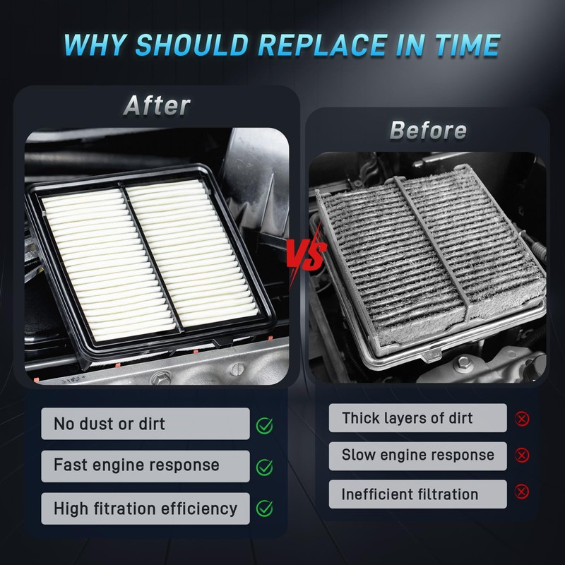 Our air filter kit is rich in activated carbon, which has stronger adsorption and filtration capacity than traditional non-woven filter cotton, and can efficiently filter impurities and dust in the cabin and engine.