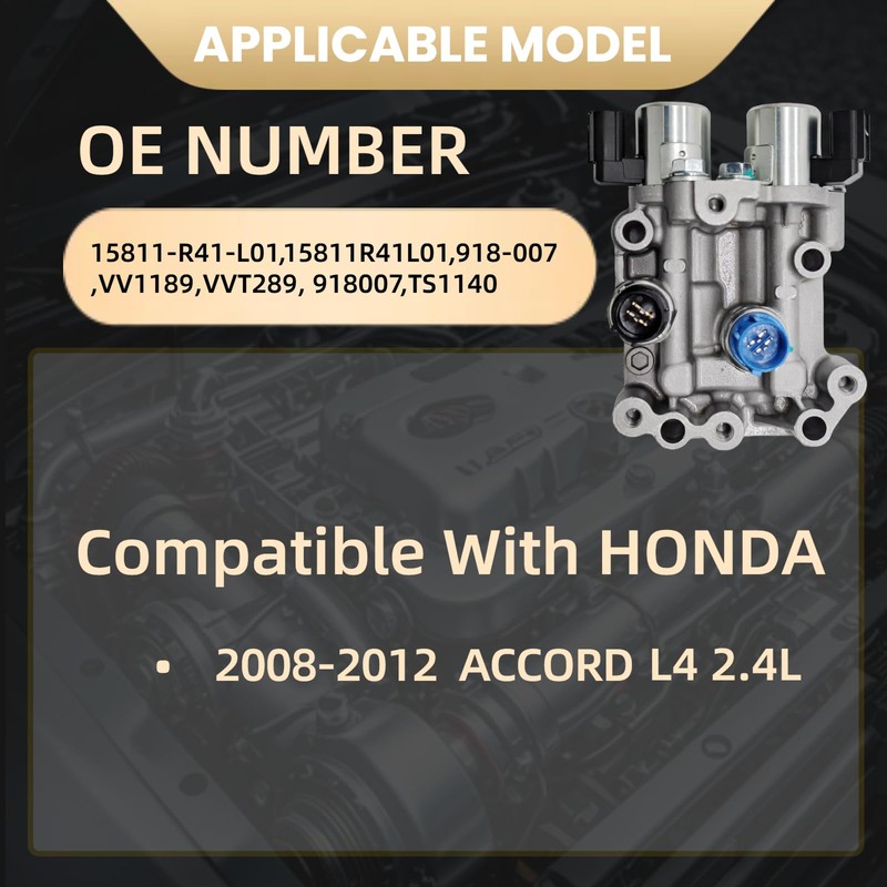 - FITMENT: Variable Timing Solenoid Compatible With Honda Accord 2008 2009 2010 2011 2012 , Camshaft Position Actuator 15811-R41-L01, 918-007, 15811R41L01, Vv1189, VVT289, 918007, TS1140