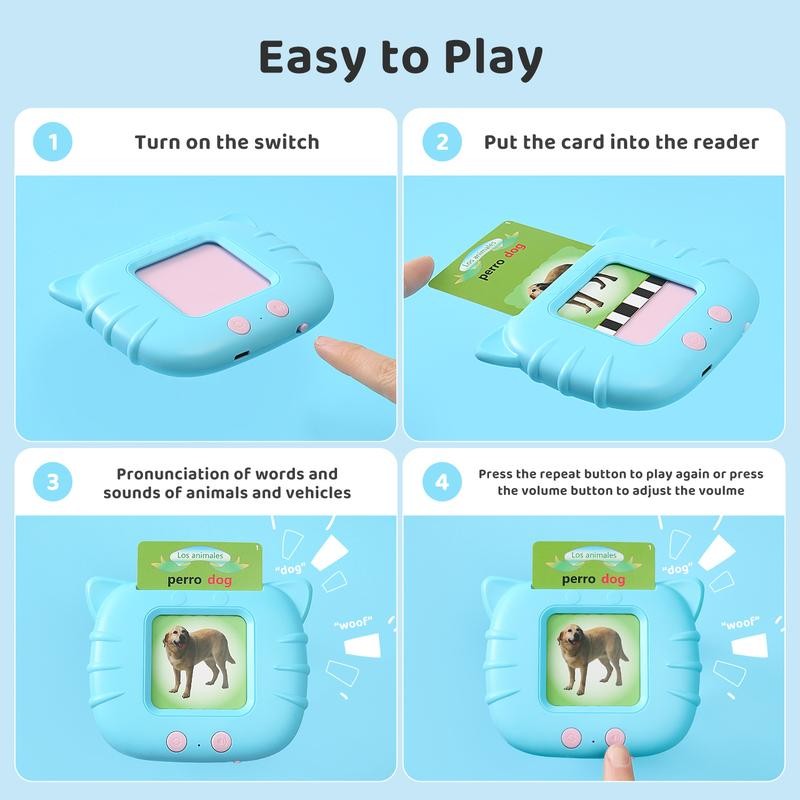 Toddler toys contains 224 sight words in both English and Spanish covering 12 themes. The bilingual learning toys help children learn English and Spanish at the same time, develops an appreciation for multiculturalism, creates a fun and easy language learning environment, and increases their interest and confidence in learning.