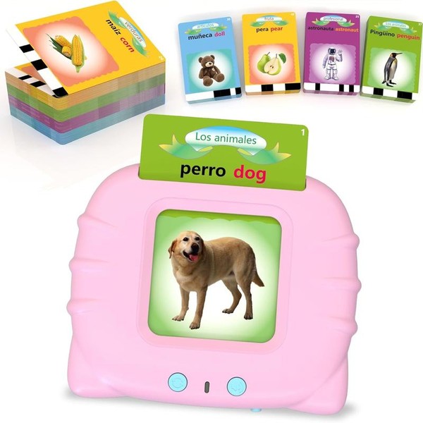 English and Spanish Talking Flash Cards,224 Words Toys for Boys and Girls,Interactive Montessori Learning Toys,Language Toys,Mother's Day Gifts:_Pink
