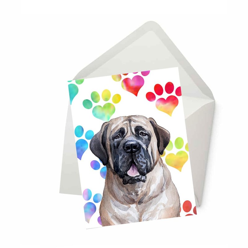 English Mastiff Dog Greeting Card, Card for Wife Husband Boyfriend Girlfriend Dog Mom Dad, Card for Him Her Friend Brother Sister, Watercolor Cards with Envelopes, Sympathy Card Loss of Dog, Cute Dog