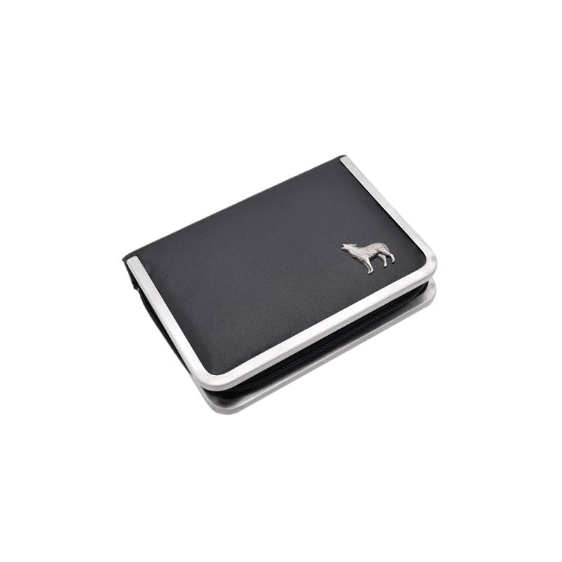 - Stylish Exterior: Featuring a black leatherette exterior with an english pewter 'Wolf' design, this set combines functionality with an elegant aesthetic.