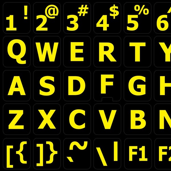English UK Large Lettering (Upper CASE) Non-Transparent Sticky Labels for Keyboard Black, White OR Yellow Background for Desktop, Laptop and Notebook (Black Background (Yellow Letters))