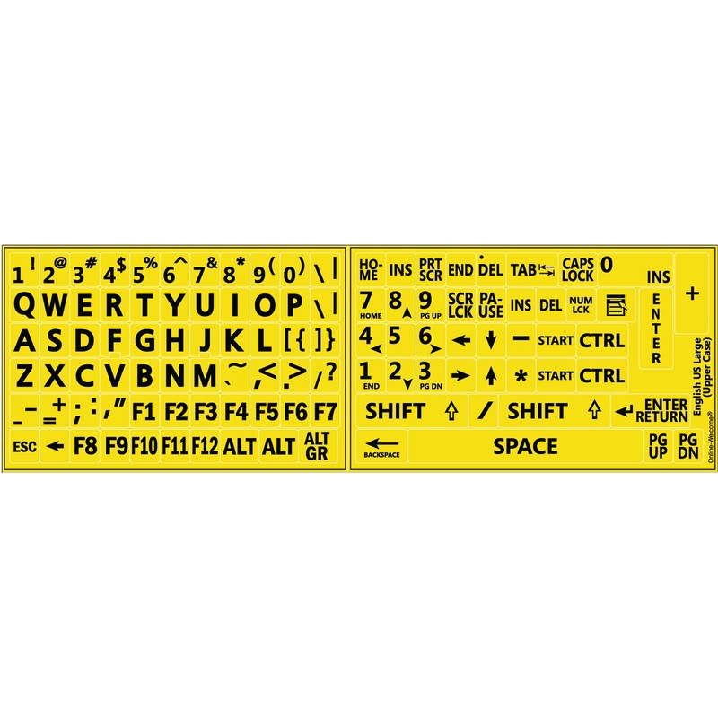 - LARGE LETTERING KEYBOARD STICKERS ENGLISH US. YELLOW BACKGROUND BLACK LETTERS. Bold letters keyboard stickers upper case