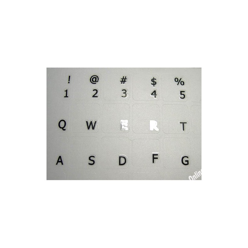 English US transparent with black lettering labels for any computer keyboards are made with typographical method on high-quality Matt Vinyl, thickness - 80mkn.