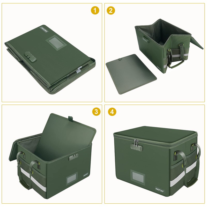 - Portable and secure: High quality combination lock design for added storage security(includes instruction manual). Sturdy adjustable handle makes it easy to carry everything you need, two zippers make it easier to open and close the box, Side pockets and label slots let you store small items and labels.The file lock box collapses down simply for easier storage when not in use. High-quality PP board that can withstand at least 200 pounds of weight, so you don't have to worry about bending.