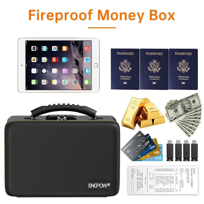 - Secure Combination Lock: ENGPOW Small Fireproof Box equipped with a high-quality combination lock and a professional fireproof zipper, the ENGPOW fireproof box ensures maximum security for your valuables. Its sturdy handle allows for easy transport, making it ideal for home, office, car, or outdoor activities like camping and travel