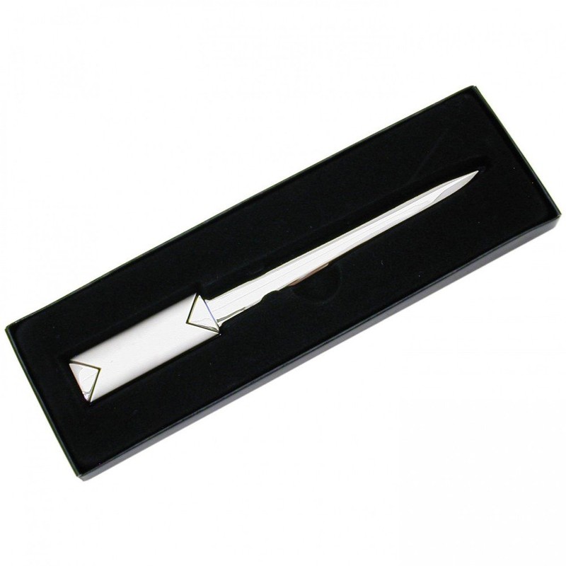 The handle of this letter opener is in the shape of a and is suitable for engraving a name or initials.