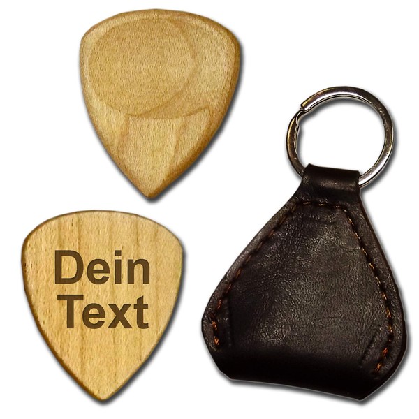 - Wooden plectrum engraved with personal text. Please select the desired font.