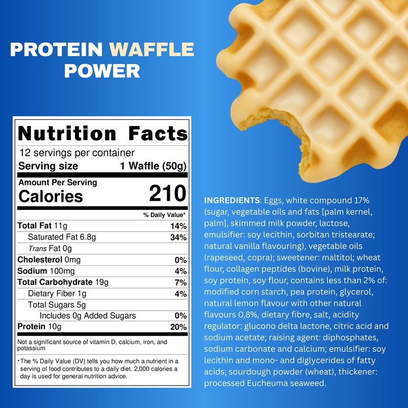 • Packed with 10g Protein – Each waffle delivers 10g of high-quality protein, making it a perfect post-workout snack or meal replacement.