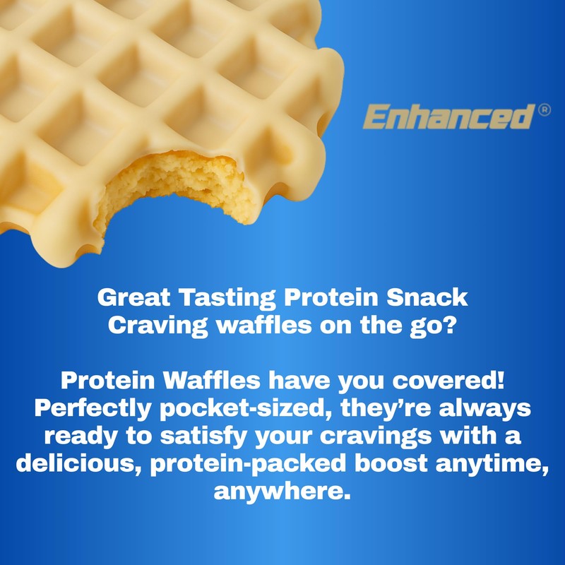 Tasty Protein Waffles On The Go! Treat your gains and taste buds with this must-try, delightful waffle filled with protein goodness. This ready-to-eat, pocket-sized snack combines America's primetime breakfast taste and texture with enhanced nutritional benefits. Each serving is packed with up to 11 grams of protein, instantly satisfying your waffle-eating cravings and fueling your gains.