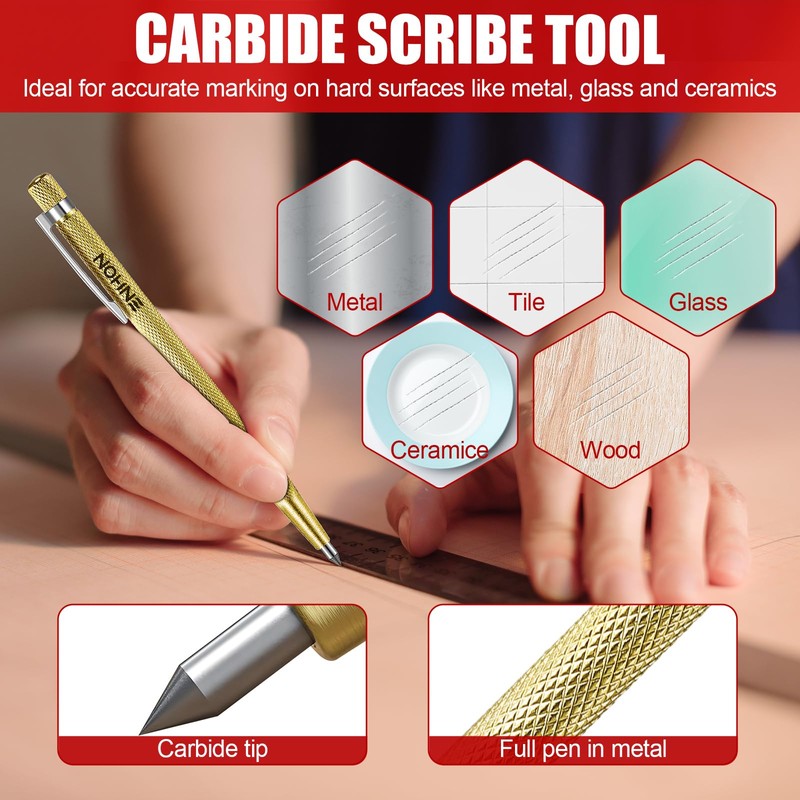 - Premium Carbide Scribe Tool: The carbide scribe boasts a tungsten carbide tip and a knurled aluminum body for enhanced control and comfort; Comes with a protective vinyl cap to prevent damage
