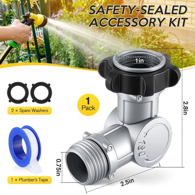 - [Bonus Accessories for a Secure Connection]Each set includes two hose swivel connectors, four extra washers, and a roll of hose elbow connector tape for a leak proof seal. Everything you need to keep your watering system running smoothly without unexpected drips or leaks